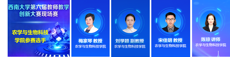 经过激烈角逐,本院教师团队表现突出:梅家琴教授凭借《基础生物化学》课程、刘学颖副教授以《遗传学》课程,分别在新农科赛道斩获两项一等奖;宋佳明老师以《生物信息学》课程在人工智能赛道获得优秀奖;陈琼老师团队的《大国三农》课程在思政赛道获得优秀奖。这是本院在该赛事中首次获得一等奖,两个一等奖团队将代表学校参加重庆市教师教学创新大赛,向更高荣誉发起冲击。