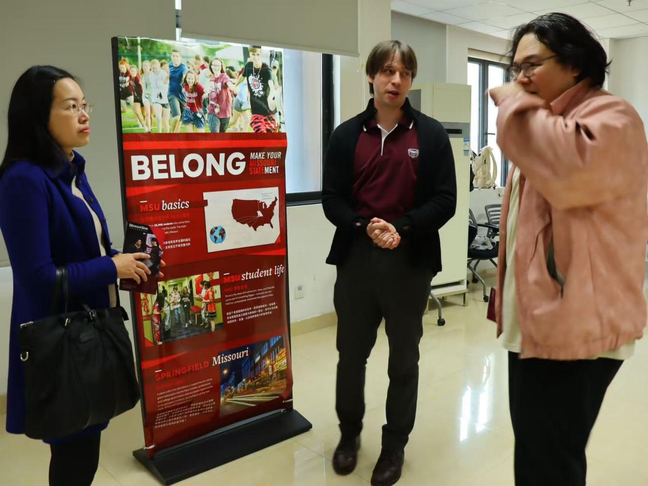 为深入推进国际化人才培养战略,搭建高水平国际教育交流平台,助力植物科学与技术专业中外合作办学项目学子精准规划海外升学路径,11月28日,“密苏里州立大学(MSU)校园开放日”活动在隆平楼205顺利举办,MSU招生官Kevin James先生、Jinzi Fan女士专程来到西南大学,为本次活动提供支持。活动以专业化咨询、沉浸式互动为核心,为160余名学子提供全方位、多层次的MSU求学指导,为中外合作教育高质量发展注入新动能。