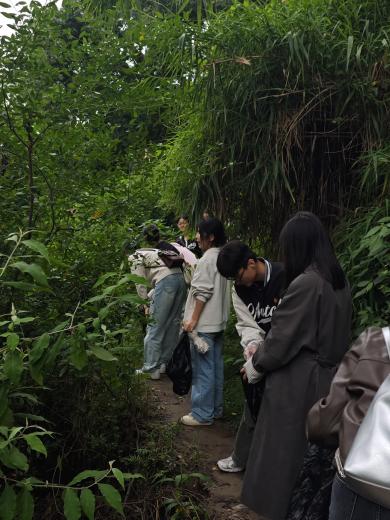 离开纪念馆后,成员前往金刚碑步行栈道进行“涤岸嘉陵,拾见青山”的志愿活动。活动前,支部成员详细讲解垃圾分类标准及安全注意事项,确保行动科学有序。随后,党员们分组沿步道捡拾,重点清理路面、草丛、江边的塑料袋、饮料瓶、纸巾等垃圾,并将分类好的垃圾装入对应垃圾袋。在热闹欢快的氛围中,大家互帮互助,共同践行环保担当。